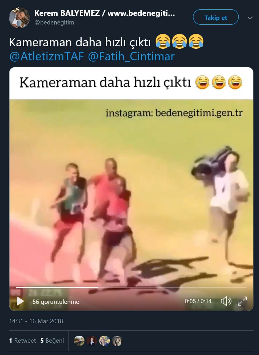 Öte yandan, Çin’in Shanxi kentinde düzenlenen üniversite sprint yarışında 100 metre koşusunda kameraman olarak görev yapan bir üniversite öğrencisinin, taşıdığı kameraya rağmen koşucuların hızına ayak uydurduğu görüntü dikkat çekmişti.