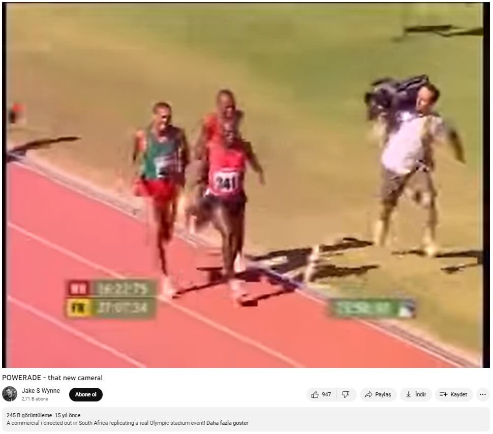 Kameramanın atletlerden daha hızlı koştuğu görülen video aslında Powerade adlı enerji içeceğinin reklâmına ait.