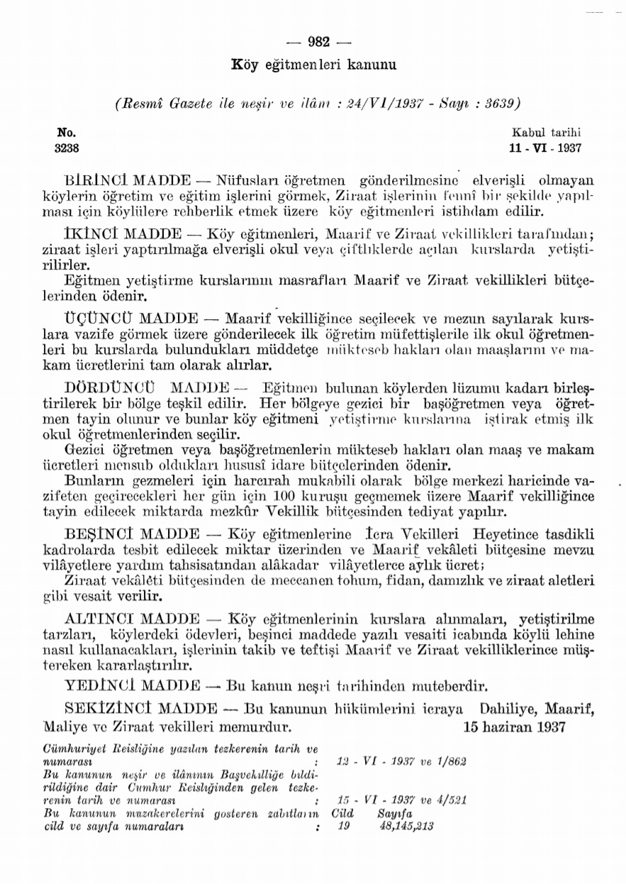 Köy Enstitüleri, Mustafa Kemal Atatürk tarafından değil; vefatının akabinde 17 Nisan 1940 tarihli ve 3803 sayılı yasa ile kurulmuştur.