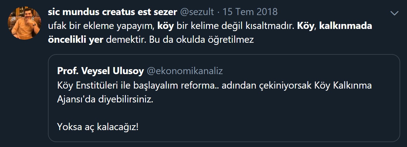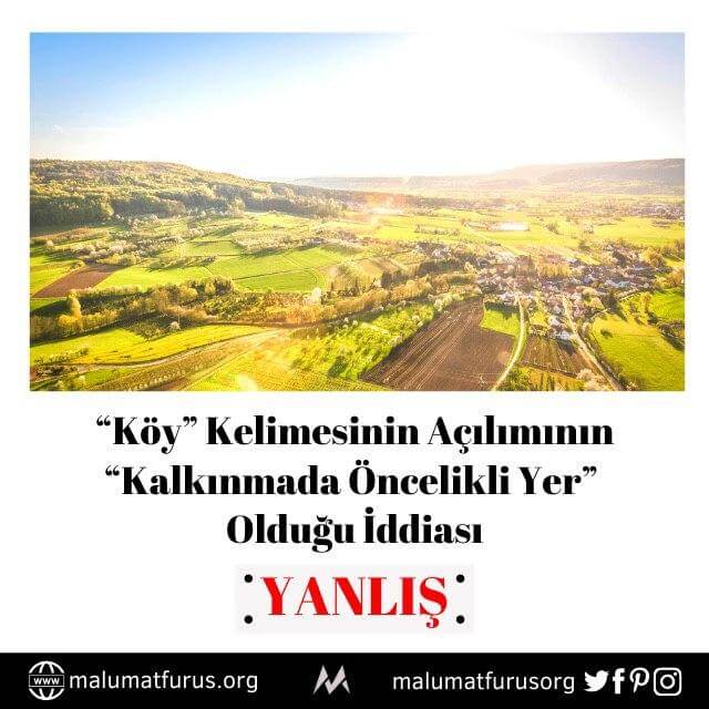“Köy” kelimesinin açılımının “kalkınmada öncelikli yer” olduğu iddiası asılsızdır. Köy kelimesi “kalkınma” ve “öncelik” kelimelerinden çok daha önce kullanımdaydı.