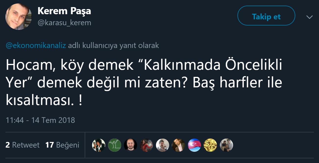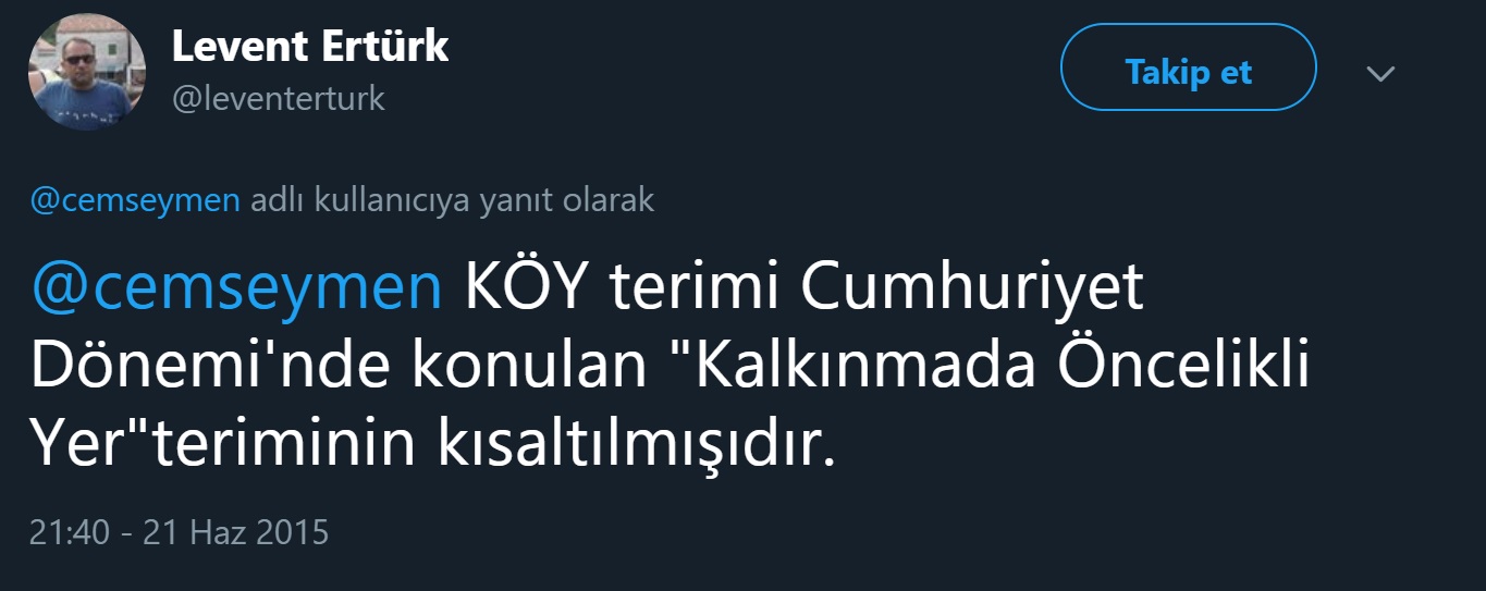 Özetle, “Kalkınmada Öncelikli Yer” tanımının kısaltması “KÖY” olabilir; lâkin, köy sözcüğünün açılımı “Kalkınmada Öncelikli Yer” değildir.