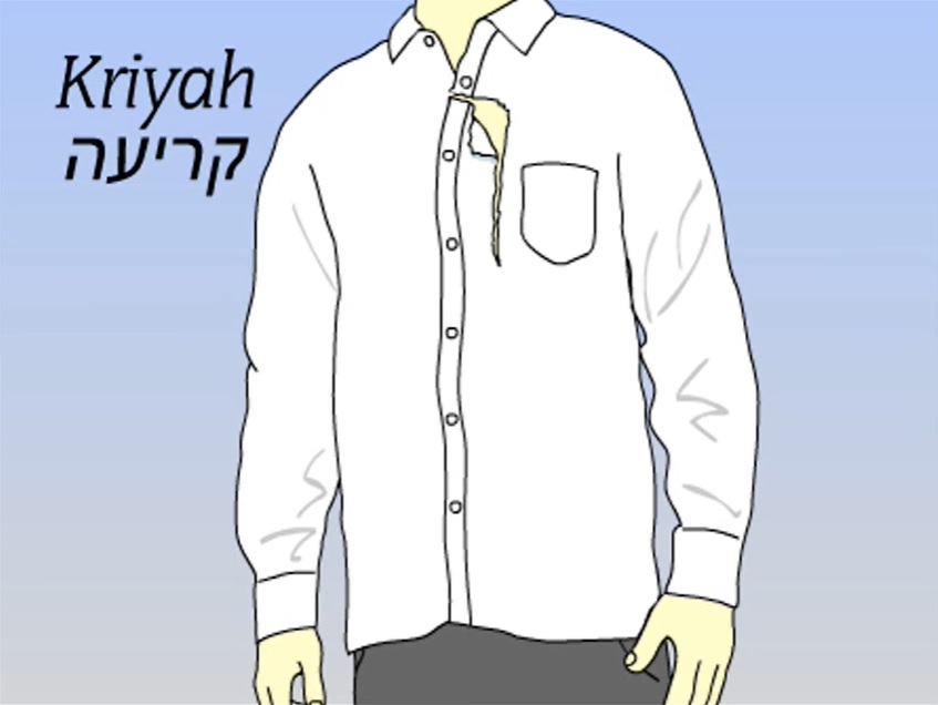 “Kriyah, ölen kişinin çocuğu, ebeveyni, eşi ve kardeşi tarafından yapılır. Genellikle cenaze töreni başlamadan önce cenaze evinde yapılır. Siyah kurdele kullanılıyorsa cenaze idarecisi tarafından sağlanır. Kriyah her zaman ayakta yapılır. Ayakta durma eylemi, bir keder anında gücü gösterir. Ebeveynler için giysinin sol tarafında – kalp üzerinde – ve diğer tüm akrabalar için sağ tarafta bir kesim yapılır. Bazen insanlar, ebeveynleri dışındaki akrabaları için sol tarafını keserek derin keder duygularını ifade etmeyi seçerler. Aile, yırtık ya da kesiği yapılırken “Barukh atah Adonai Eloheinu melekh ha’olam dayan ha’emet” ayetini okur … Yırtık elbise veya kurdele şiva’nın yedi günü boyunca giyilir”