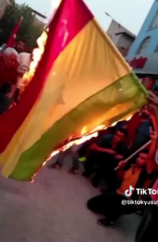 (Türkiye Cumhuriyeti tarafından resmî olarak tanınan) Irak’a bağlı Kürdistan Bölgesel Yönetimi’nin resmî bayrağı terör örgütü PKK’nın (Partiya Karkerên Kurdistanê / Kürdistan İşçi Partisi) sembolü olarak yorumlanıp sıklıkla tepki görüyor. Yargılama konusu da olabilen bu bayraklara tepki gösterilirken bazen farklı ülkelere ait bayraklar da hedef olabiliyor.