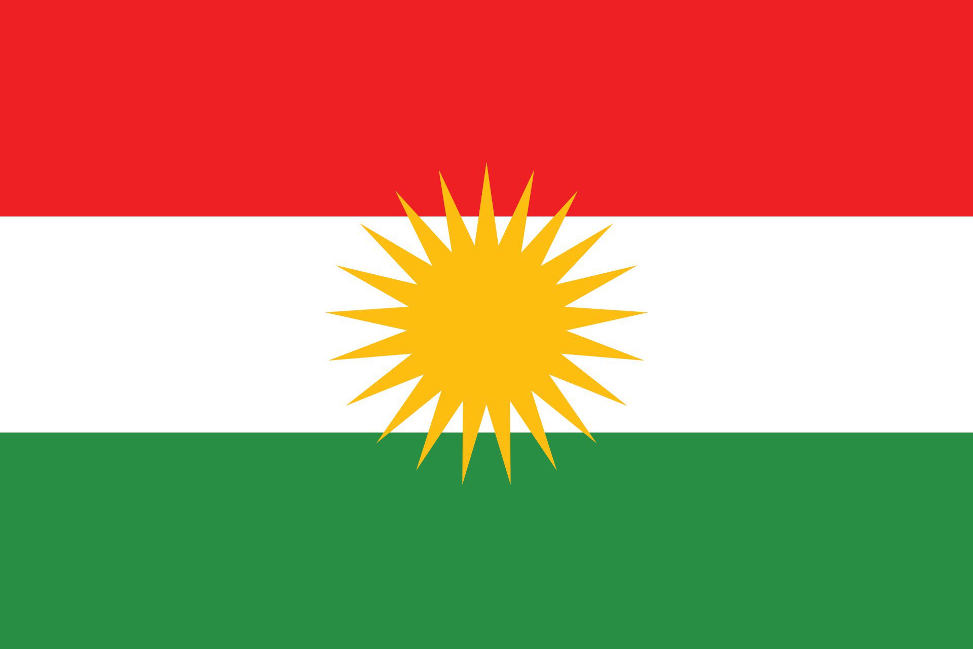 Irak anayasasına göre merkezî yönetime bağlı olan Irak Kürdistan Bölgesel Yönetimi’nin kullandığı bayrakta (Ala Rengîn, Alaya Kurdistanê, ئاڵای کوردستان), arka planda, birbirine paralel ve eşit olarak sırasıyla kırmızı, beyaz ve yeşil üç renk şeridi ile bunların odağında koyu sarı renginde toplam 21 saçaklı Mezopotamya güneşi bulunuyor.