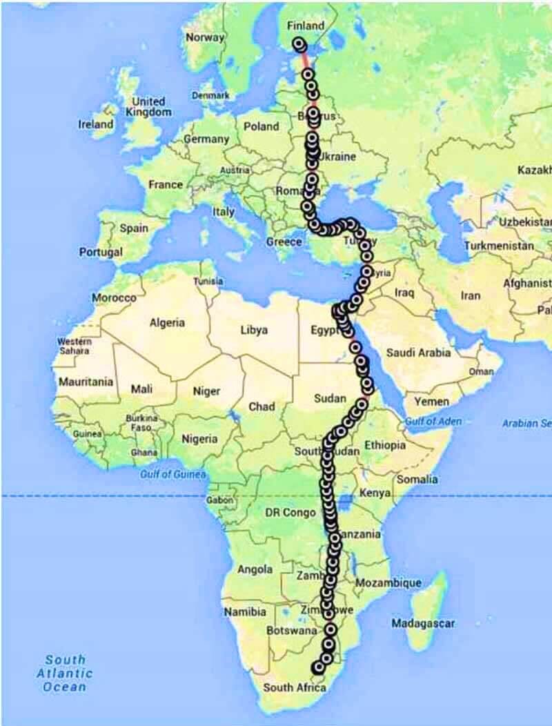 Paylaşılan harita bir arı şahininin (pernis) Güney Afrika’dan Finlandiya’ya 15 Nisan 2015 – 1 Haziran 2015 tarihleri arasındaki göçünü gösteriyor.