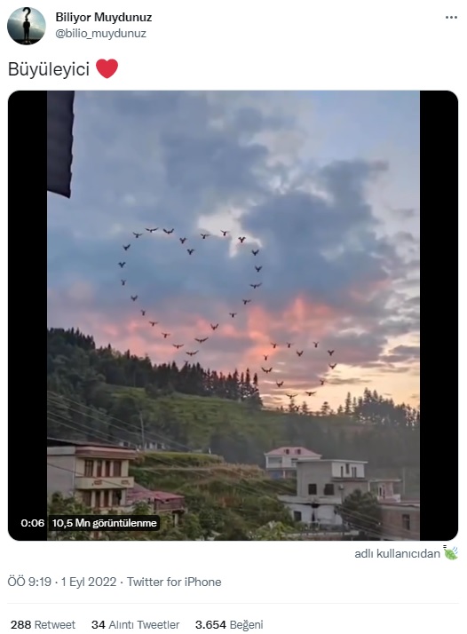 Sosyal medyada paylaşılan, havada uçarken kalp şeklini alan kuşların görüldüğü videonun gerçek olup olmadığının sorgulandığı, bazı sosyal medya kullanıcılarının bu videoyu peşinen gerçek addettiği görülüyor.