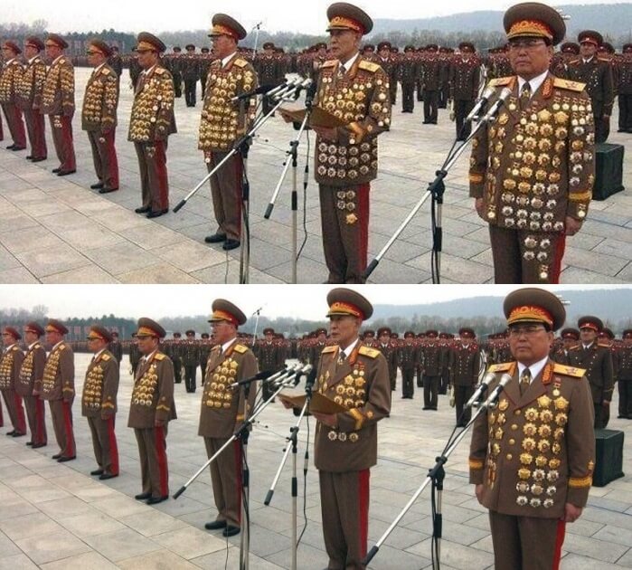 Kuzey Koreli generallerinin rozet, bröve ve madalya “enflasyonu” bilinen bir olgu.