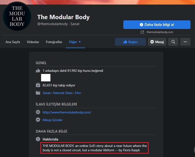 “Modern Frankenstein” olarak nitelenen bilim kurgu hikâyesinin tamamının aktarıldığı www.themodularbody.com adresindeki internet sitesindeki ve Facebook gibi sosyal medya hesaplarında açıklamada projenin insan hücrelerinden yapılmış canlı bir organizma yaratılmasıyla ilgili çevrimiçi bir bilim kurgu hikayesi olduğu (“The Modular Body, an online SciFi story about a near future where the body is not a closed circuit, but a modular lifeform — by Floris Kaayk” gibi notlarla) belirtilmişti.