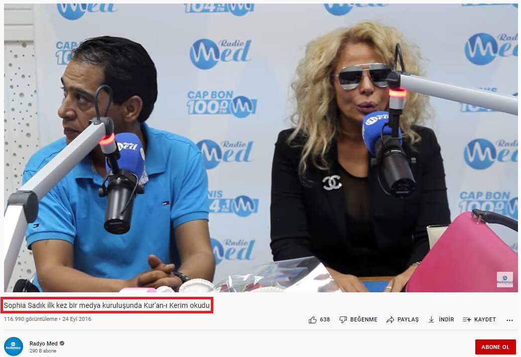 Sofia Sadek’in Tunus merkezli “Radyo Med” isimli radyo kanalında, sureyi okuduğu programın videosu 24 Eylül 2016 tarihinde “Kur’an-ı Kerim ilk defa bir medya ortamında okundu” başlığıyla kanalın YouTube sayfasında yayınlanmıştı.