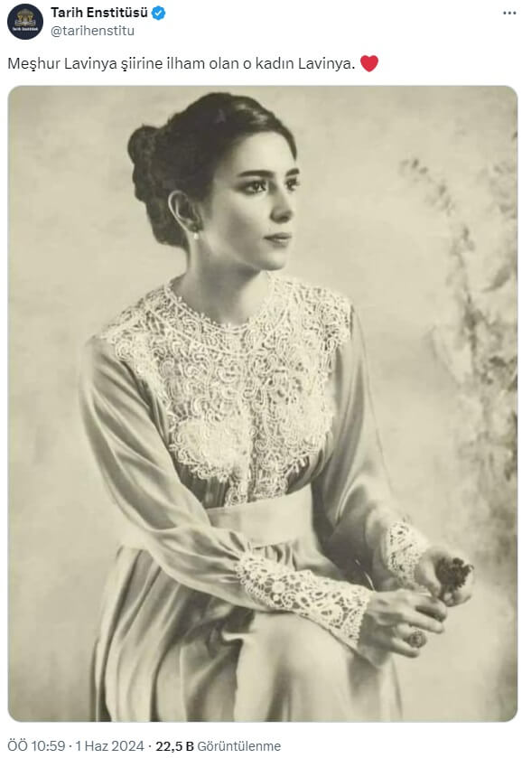 Tarih Enstitüsü (@tarihenstitu): “Meşhur Lavinya şiirine ilham olan o kadın Lavinya. ❤️”