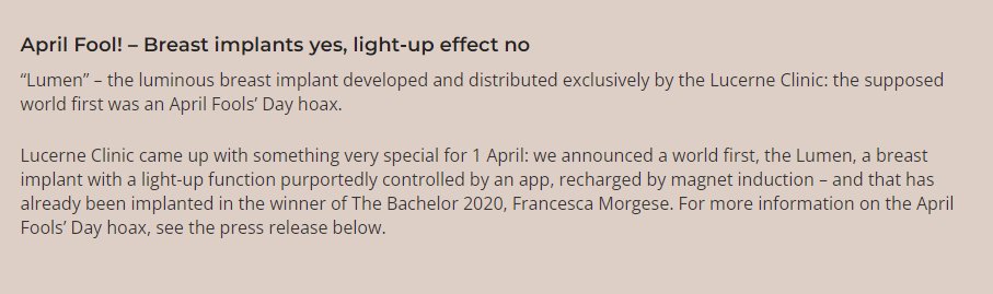 “Lümen” – Lucerne Clinic tarafından özel olarak geliştirilen ve dağıtılan parlak meme implantı: sözde dünya ilk olarak bir 1 Nisan şakasıydı.