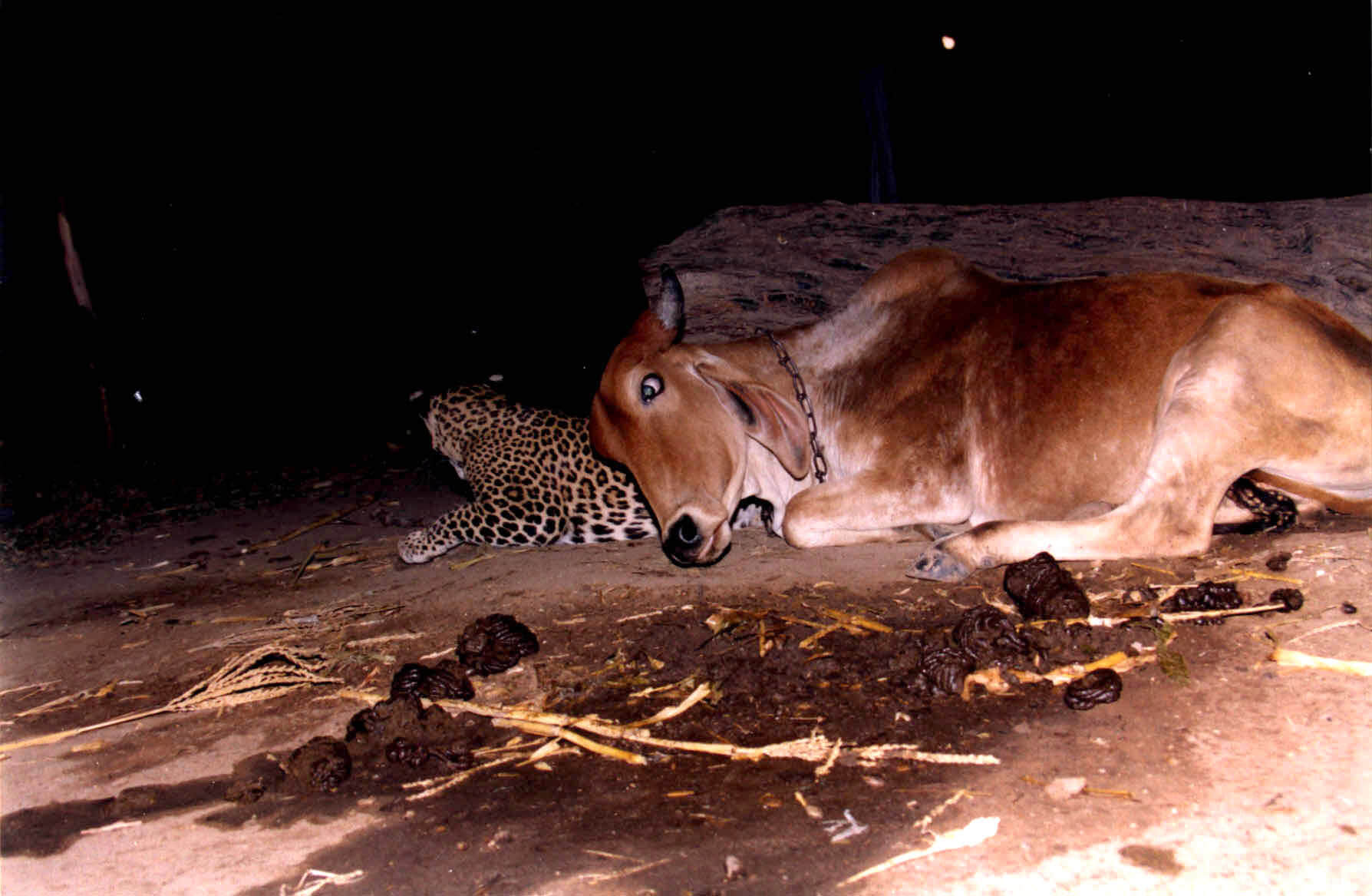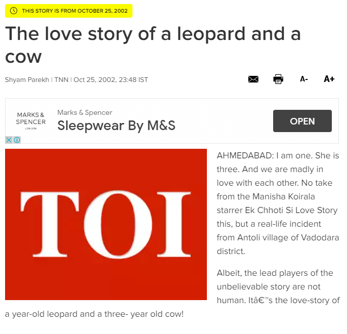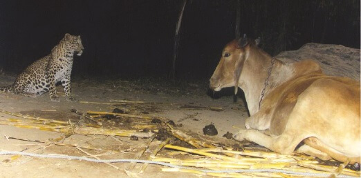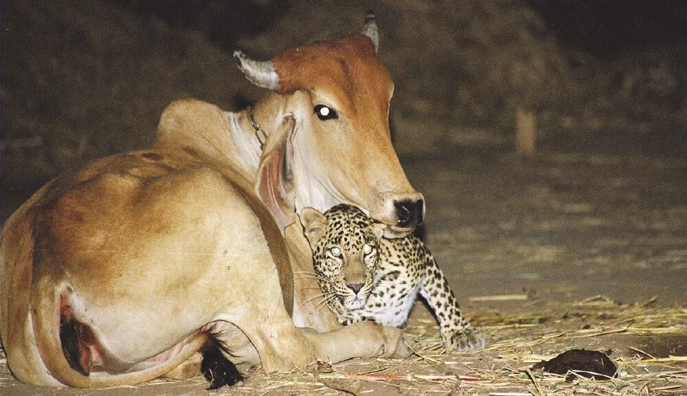 Leopar ve ineğin yakınlaşması Hindistan merkezli The Times of India adlı gazetede 2002 yılında yayımlanan bir haberde konu edilmişti.