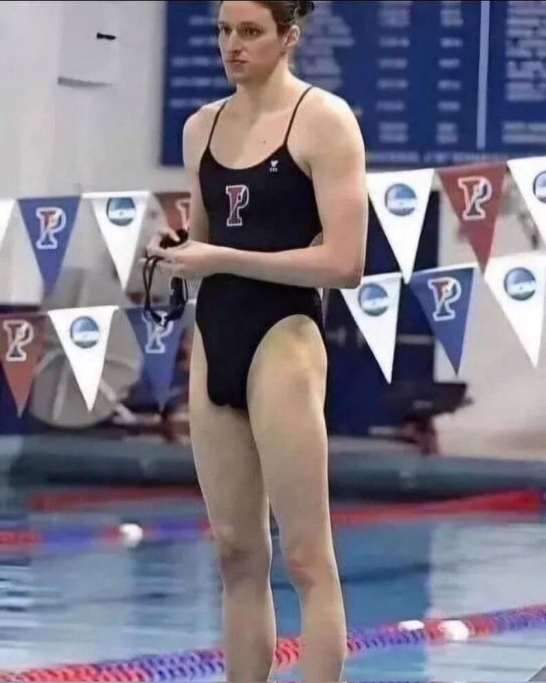 Lia Thomas’ın yüzücü mayosundan penisinin belirgin olduğu iddiasıyla paylaşılan fotoğraf dijital müdahale içeriyor.