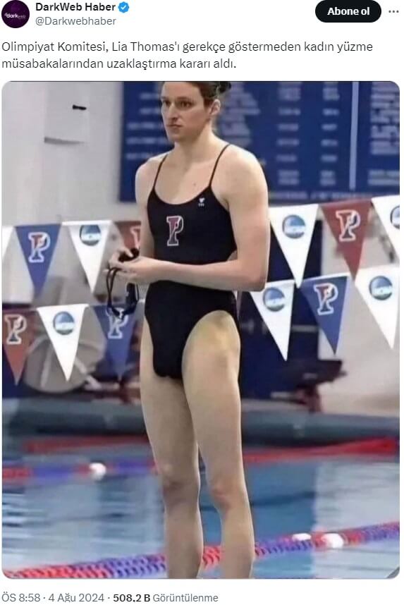 Medyanın 50 Tonu (medyanin50tonu) & DarkWeb Haber (@Darkwebhaber) & Muhbir (@ajans_muhbir) & X Haber (@xhaber_) & THS Haber (@temmuzhaber): “Olimpiyat Komitesi, Lia Thomas’ı gerekçe göstermeden kadın yüzme müsabakalarından uzaklaştırma kararı aldı.”