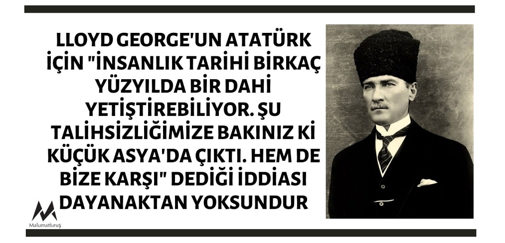 Lloyd George’un Mustafa Kemal Atatürk Hakkında İnsanlık Tarihi Birkaç Yüzyılda Bir Dahi Yetiştirebiliyor. Şu Talihsizliğimize Bakınız Ki Küçük Asya’da Çıktı. Hem De Bize Karşı.. Elden Ne Gelebilirdi?” Dediği İddiası Dayanaktan Yoksun