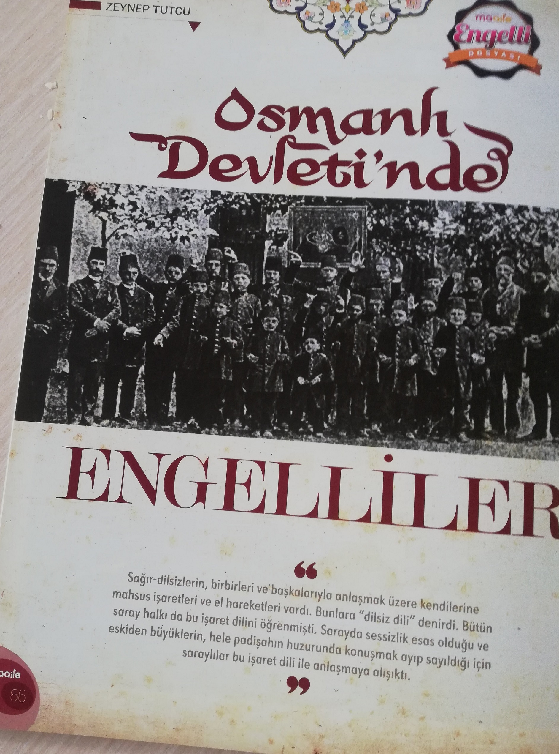 Maaile Dergisi’nde Zeynep Tutcu tarafından hazırlanan “Osmanlı Devleti’nde Engelliler” başlıklı yazının yer aldığı sayfalar ise şöyle: