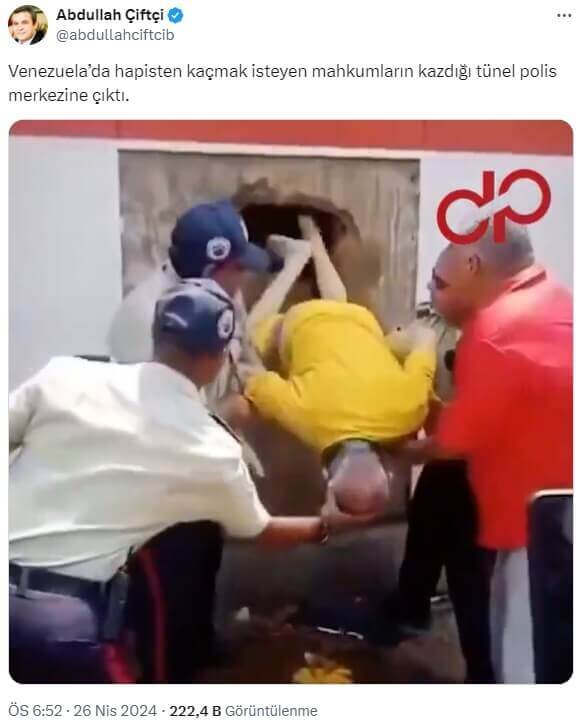 Abdullah Çiftçi (@abdullahciftcib): “Venezuela’da hapisten kaçmak isteyen mahkumların kazdığı tünel polis merkezine çıktı.”