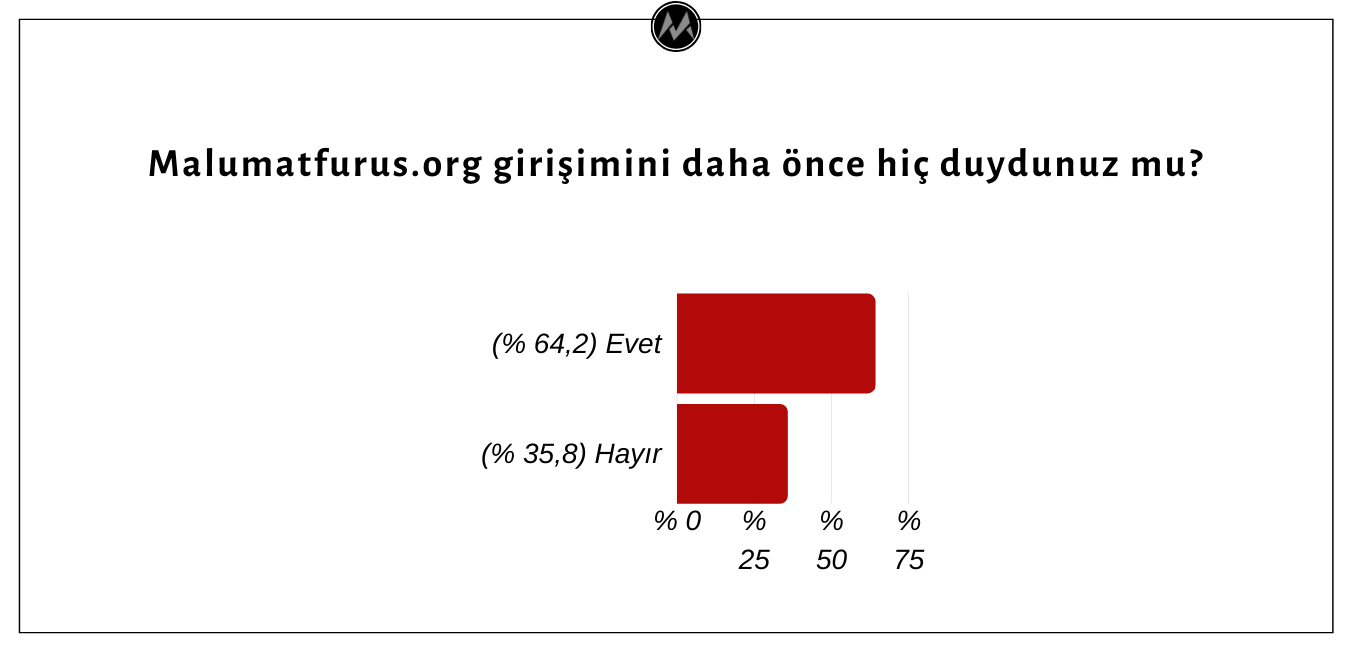 Ankete katılan köşe yazarlarının çoğunluğunun 4 yıldır köşe yazarları odaklı faaliyet gösteren Malumatfurus.org’dan haberdar olduğu anlaşılıyor. Katılımcıların % 64,2’si daha önce Malumatfurus.org’u duyduğunu belirtirken, % 35,8’i ise bu anket öncesinde Malumatfurus.org girişimini hiç duymadıklarını belirtmiştir.