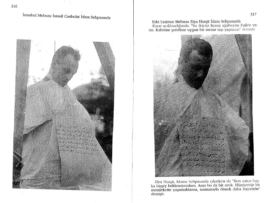 İsmail Canbulat Bey ve Ziya Hurşit Bey’in İzmir Suikastı duruşmalarından çıkan idam cezası kararının infazının sonrasında kaydedilen fotoğrafları birbirine benzese de İzmir Suikastı konulu yayınlar incelendiğinde farklı olduğu anlaşılıyor.