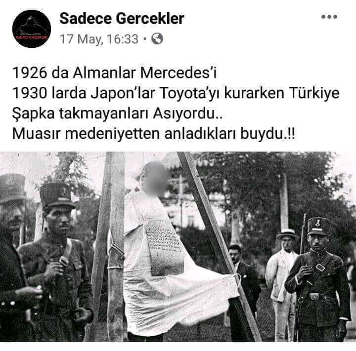Sadece Gercekler: 1926 da Almanlar Mercedes’i 1930 larda Japon’lar Toyota’yı kurarken Türkiye Şapka takmayanları Asıyordu.. Muasır medeniyetten anladıkları buydu.!!