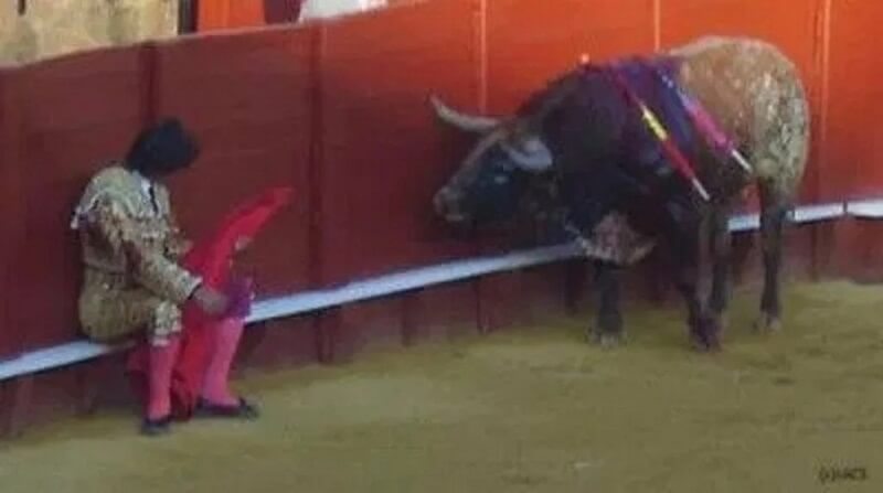 Sanılanın aksine fotoğraftaki matadorun duruşu, boğaya yaptıklarından pişmanlığı işaret etmiyor. Arenadaki matadorun bu oturuşu, boğadan korkmadığını göstermek adına yapılan gösterinin bir parçası.