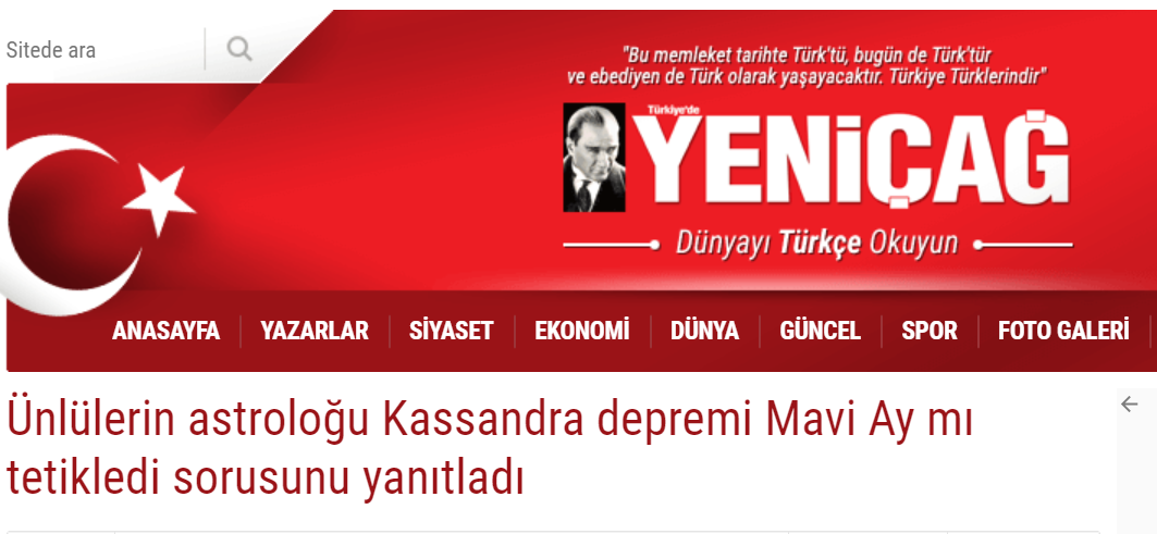 Deprem ile Mavi Ay’ın ilişkili olduğu iddialarına kimi basın yayın kuruluşları da yer vermişti. Bu medya kuruluşlarının, bilimsel bilgiler ile açıklanan iki doğa olayının bağlantısı hakkında, bir fizikçiye, jeologa ya da astronoma değil de astrologa danışmaları da, amaçlarının okurlarına hakikati sunmaktan ziyade, ilgi çekerek “tık almak” olduğuna delalet ediyor.