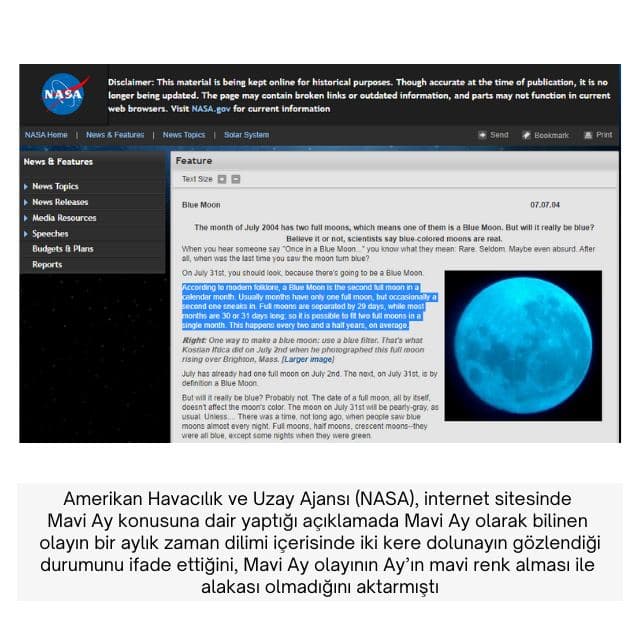 Bugün, her 2,5 yılda bir meydana gelen bu durum hakkında öne sürülen bu yanlış iddiayı aktarıp Mavi Ay olayının ne olduğundan ve hakkındaki “mavi renkte gözlendiği” iddiasından bahsedeceğiz.