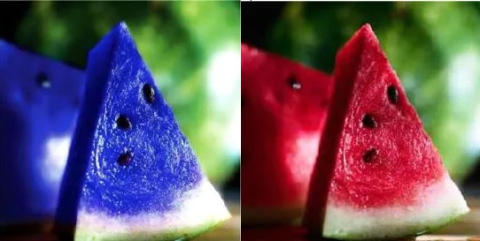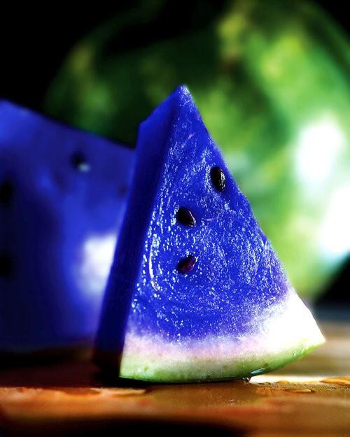 Paylaşılan mavi karpuz görseli ise, normal bir karpuz dilimi fotoğrafının montajlanmasıyla oluşturulmuş.