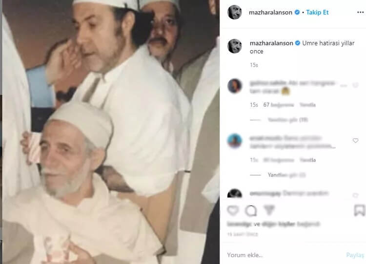 5 defa umre ziyaretinde bulunduğu bilinen Alanson, sosyal medya hesabında bir fotoğrafı “Umre hatırası yıllar önce” notuyla paylaşmıştı.
