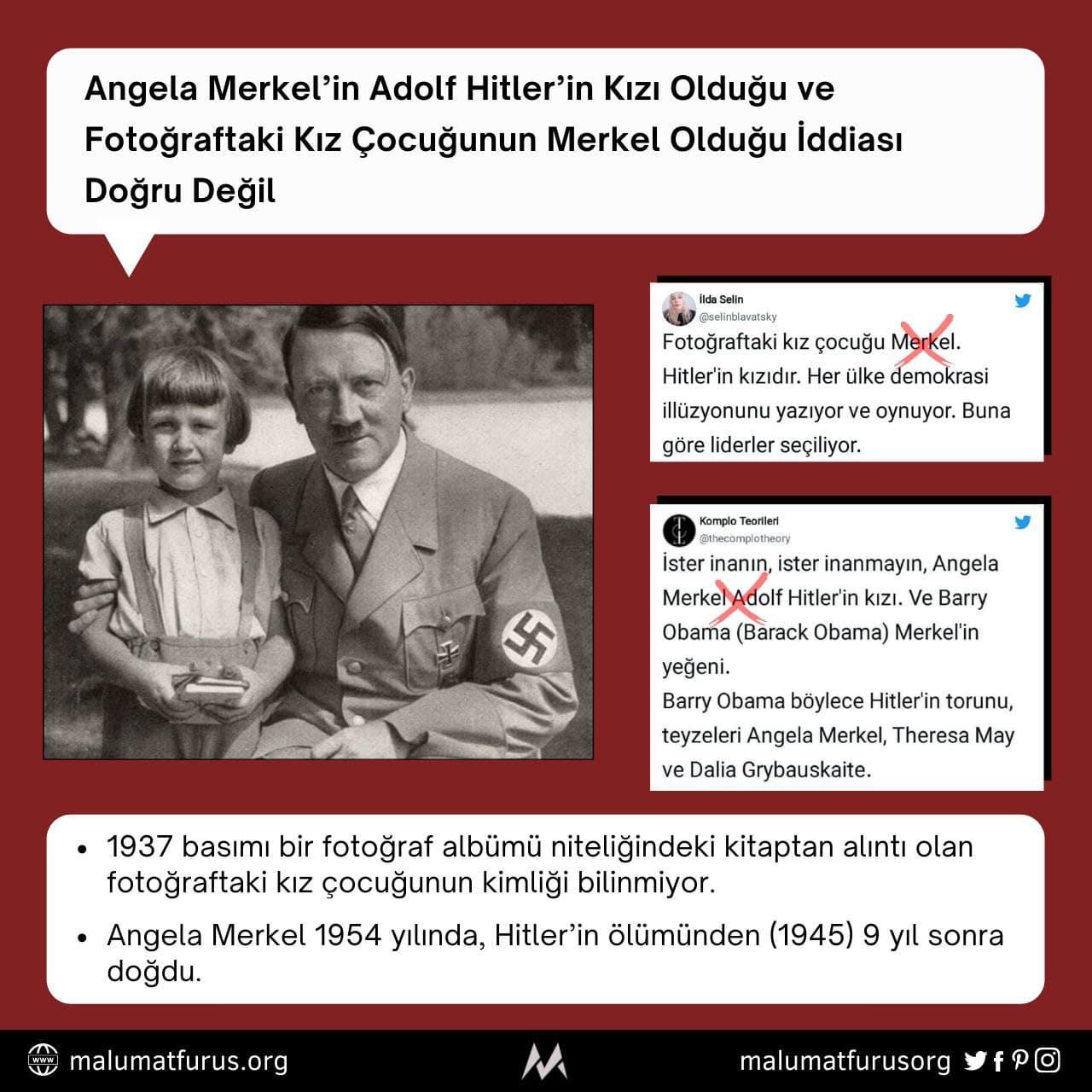 Angela Merkel’in Adolf Hitler’in kızı olduğu iddiası 2016 yılında (Donald Trump’ın kazandığı ABD Başkanlık seçim süreciyle birlikte) sosyal medyada paylaşılmasının ardından yaygınlık kazanmış.