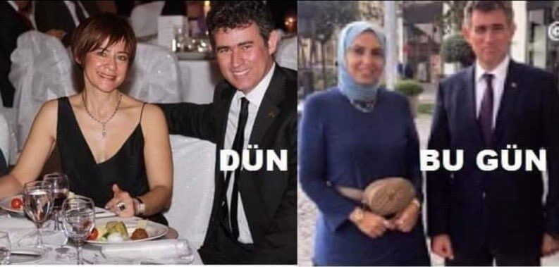 Metin Feyzioğlu’nun eşinin başını kapatıp tesettüre girdiği iddiasıyla paylaşılan görsel şu şekilde: