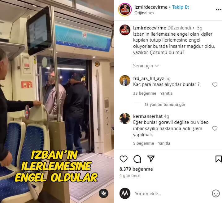 Bahsi geçen paylaşımın açıklama kısmında “İzban’ın ilerlemesine engel olan kişiler kapıları tutup ilerlemesine engel oluyorlar burada insanlar mağdur oldu, yazıktır. Çözümü bu mu?” cümlesine yer verilmiş.