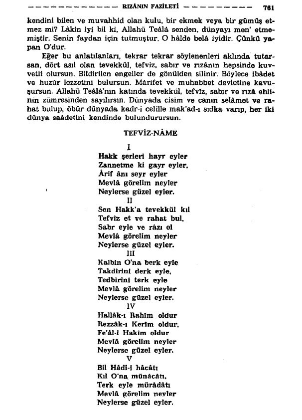 Hakk’a tevekkül, teslim, sabır, rıza, şükür gibi didaktik söylemlere eşlik eden kilit bir söz: