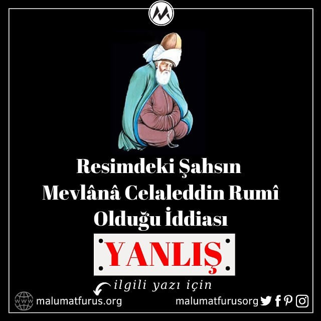 Söz konusu insan Mevlânâ Celaleddin Rumî olunca “Yine Gel” rubaisinin Mevlânâ’ya ait sanılması ve Mevlânâ’nın türbesinin resimlerinin Hz. Muhammed’in kabrine ait zannedilmesi gibi absürt durumlar ile karşılaşabiliyoruz. Mevlânâ’nın bahsinin geçtiği her yayında gördüğümüz resmin Mevlânâ’yı temsil ettiği ya da ona ait olduğunun sanılması da bunlardan biri.