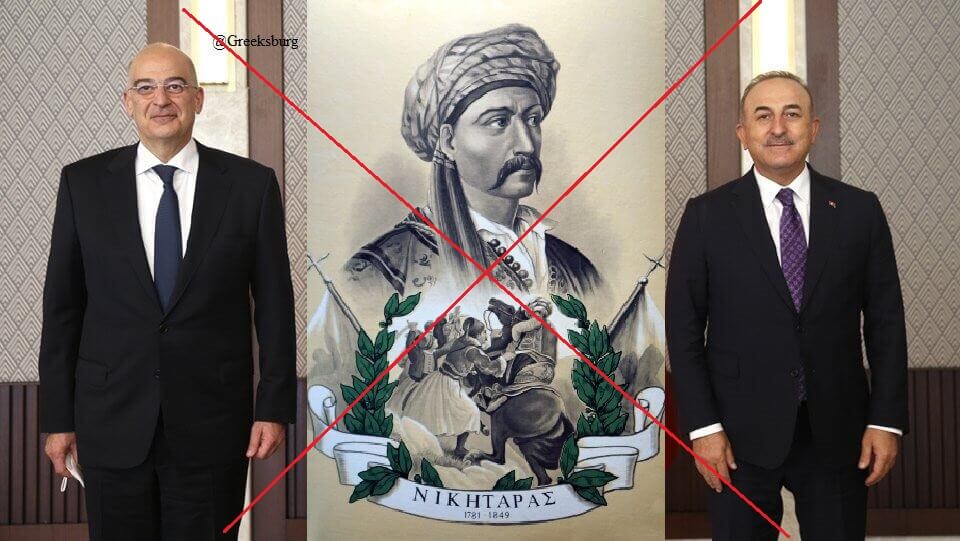 Dışişleri Bakanı Mevlüt Çavuşoğlu’nun ve Yunanistan Dışişleri Bakanı Nikos Dendias’ın lakabı Turkofagos (Türkleri Yiyen) olan Yunan halk kahramanı Nikitaras’ın tablosunun önünde fotoğraf çekindiği iddiasıyla servis edilen montaj görsele değineceğiz.