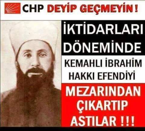 CHP iktidarı döneminde Kemahlı İbrahim Hakkı’nın ölümünün ardından mezarından çıkarılıp asıldığı iddiası gerçek dışı. Erzincan’ın Kemah ilçesinde 1859 yılında doğan, Erzincan’daki son Mevlevi Şeyhi Kemahlı İbrahim Hakkı Efendi’nin naaşı doğal yolla vefatının ardından darağacında asılmamıştır.