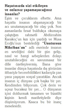 Abdurrahim Karakoç imzasını taşıyan “Unutursun Mihribanım” başlıklı şiir ise şöyle: