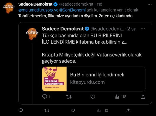Amerika Birleşik Devletleri’nin 16. Başkanı ve Cumhuriyetçi Parti’nin ilk başkanı Abraham Lincoln’e (12 Şubat 1809 – 15 Nisan 1865) imzasıyla “milliyetçilik sıradan insanların iç güdüsüdür” sözünün sosyal medyada paylaşıldığı görülüyor.