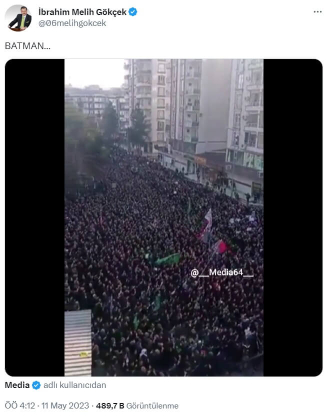 Cumhurbaşkanı Recep Tayyip Erdoğan’ın 10 Mayıs 2023 günü Batman’da gerçekleşen mitinginden görüntüler de paylaşılan video ile hâliyle örtüşmüyor.