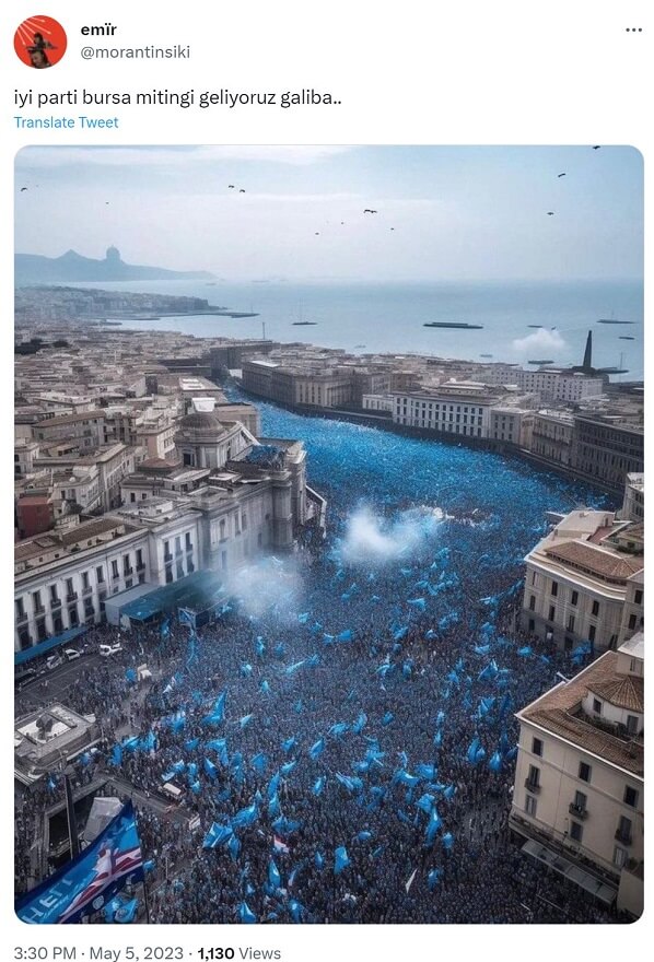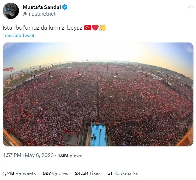 23 Mart 2014 tarihli AK Parti İstanbul Yenikapı mitingine ait olduğu hâlde Millet İttifakı’nın 6 Mayıs 2023 tarihli İstanbul Maltepe Mitingi’ne ait sanılarak paylaşılan fotoğraf Mustafa Sandal‘ın ve Can Dündar‘ın paylaşımlarıyla yaygınlık kazanmıştı.
