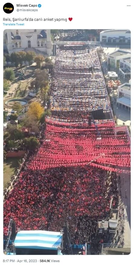 Cumhurbaşkanı Recep Tayyip Erdoğan’ın 16 Nisan 2023 günü Şanlıurfa’daki mitinginde kaydedildiği iddiasıyla paylaşılan görsel Cumhurbaşkanı Erdoğan’ın 3 Aralık 2022 tarihinde Şanlıurfa’da katıldığı toplu açılış töreninden.