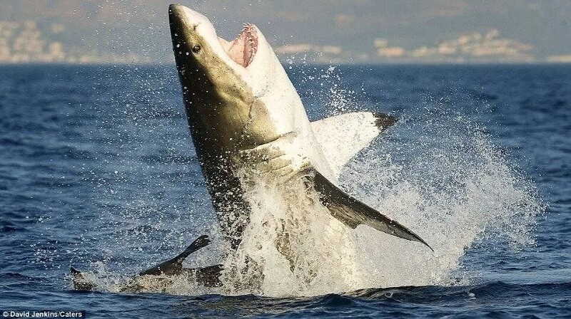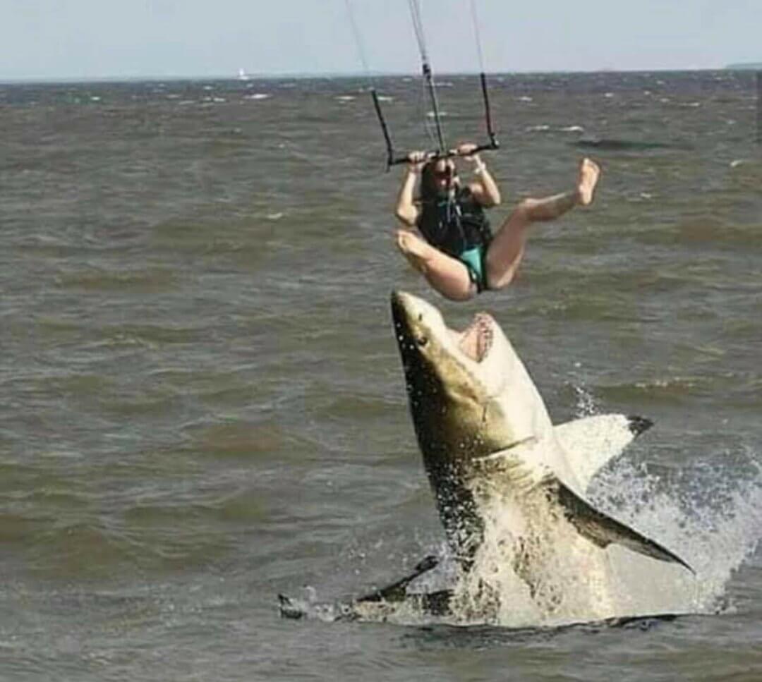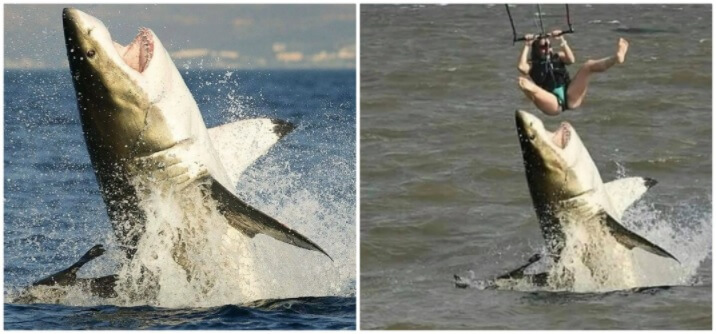 Köpekbalığından kıl payı kurtulan paraşütçüye ait olduğu sanılarak paylaşılan görsel aslında Cater Haber Ajansı için David Jenkins tarafından fok avı esnasında görüntülenen köpekbalığı fotoğrafı kullanılarak oluşturulmuş.