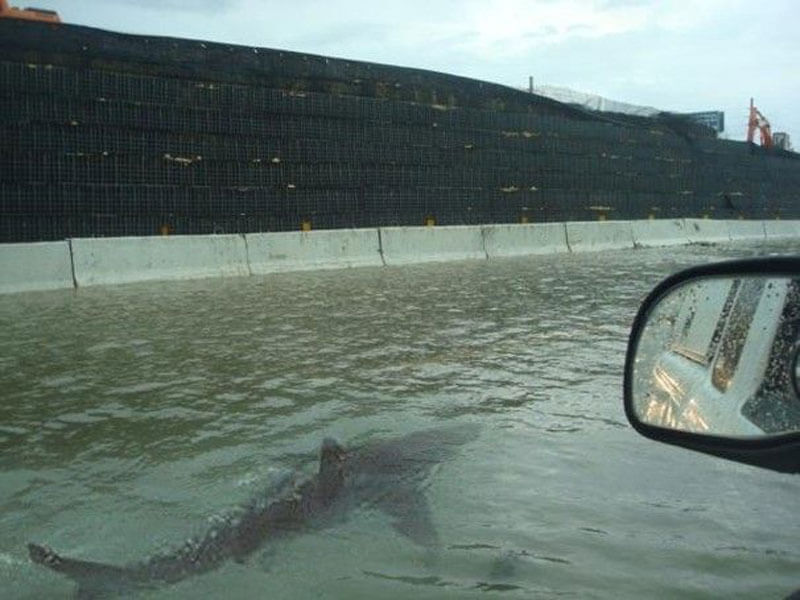 Kasırga nedeniyle sular altında kalmış otoyolda yüzen köpek balığı fotoğrafıyla başlayalım…