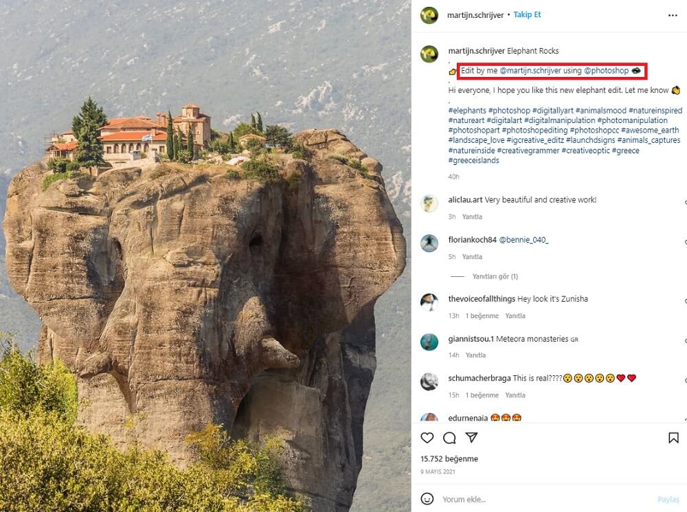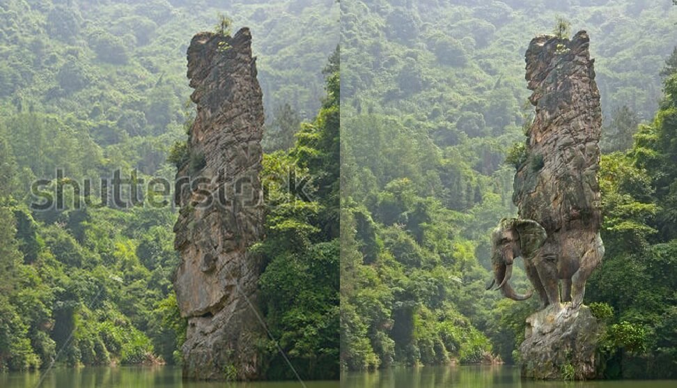 Fil ve yavru fil şeklindeki kaya görseli de (“Bir Fili Nasıl Gizlersiniz?” (“How Do You Hide An Elephant?“) adlı photoshop yarışması için) dijital düzenleme ile oluşturulmuş.