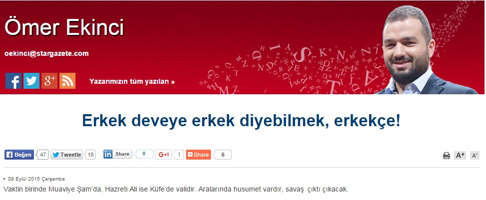 - Ömer Ekinci’nin 9 Eylül 2015 tarihli köşe yazısı: http://haber.star.com.tr/yazar/erkek-deveye-erkek-diyebilmek-erkekce/yazi-1055339