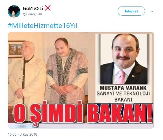 FETÖ lideri Fethullah Gülen konulu montaj fotoğrafları daha önce başka bir yazıda derlenilmişti. Ancak, sosyal medyada paylaşım yaygınlığı nedeniyle Sanayi ve Teknoloji Bakanı Mustafa Varank’ın yer aldığı sanılarak paylaşılan aşağıdaki fotoğrafa ayrı bir yazıda değinilmesinin uygun olacağı kanaatiyle işbu yazı hazırlandı…