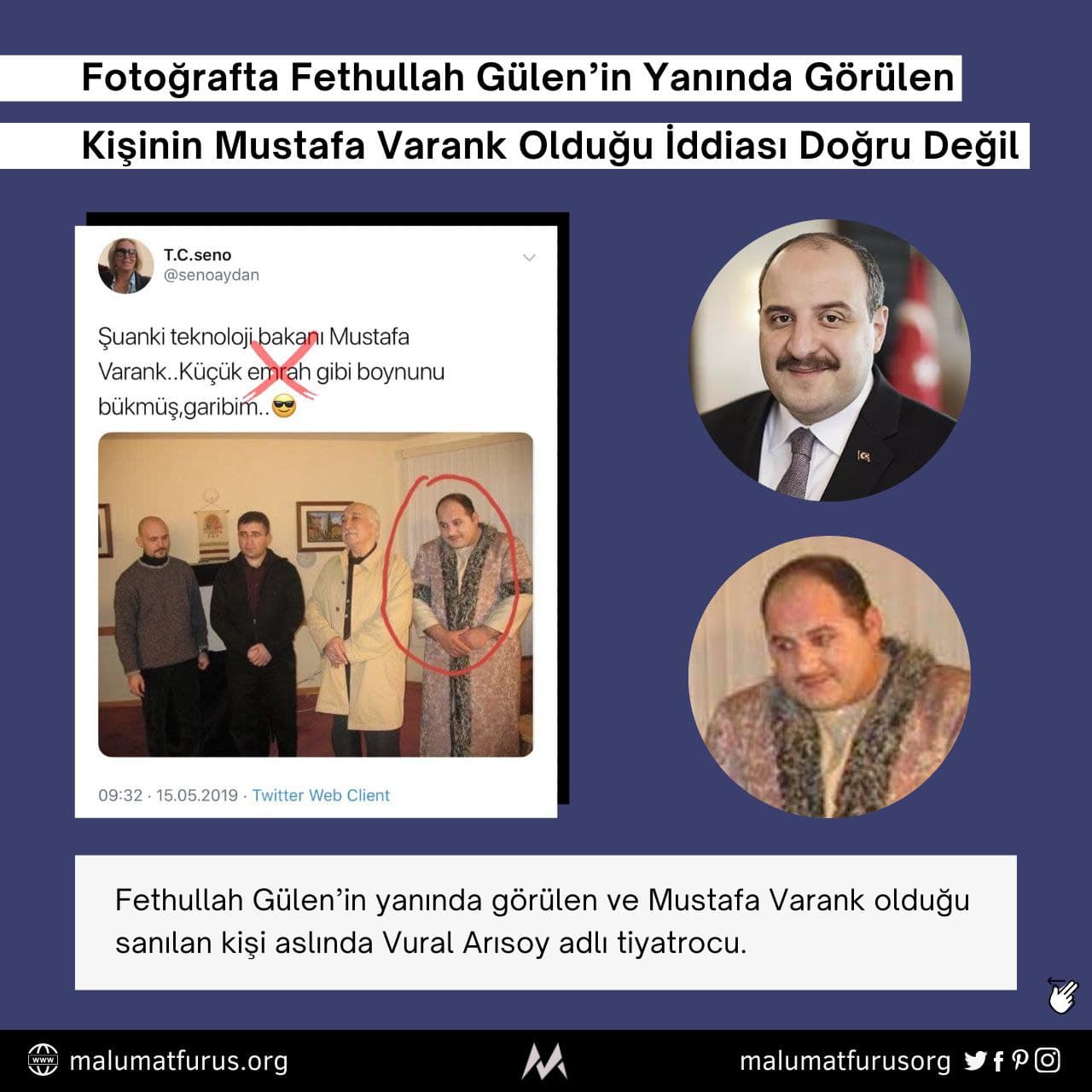 Sanılanın aksine, Fethullah Gülen’in yanında görülen ve Mustafa Varank olduğu sanılan kişi aslında Vural Arısoy adlı tiyatrocu.
