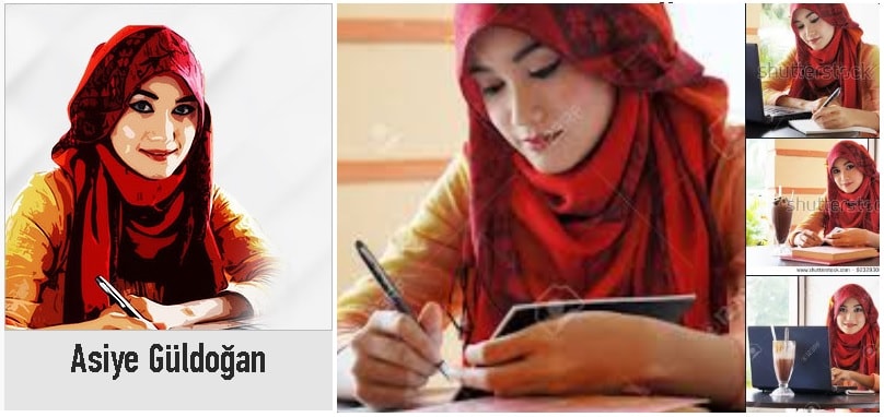 Bir diğer müstear isimli olduğu düşünülen yazar da OdaTV’deki İslami cemaatlere yönelik yazılarıyla dikkat çeken Asiye Güldoğan. Güldoğan’ın yazılarında ve sosyal medya profilinde kullandığı fotoğraf kendisine ait değil, bir stok fotoğraf sitesinden alıntı. Zaten, Fehmi Koru gibi Asiye Güldoğan da bu iddiayı reddetmiyor.