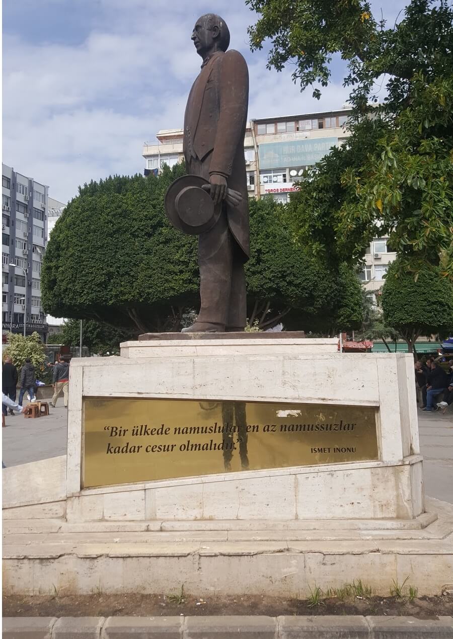 Adana’nın Seyhan ilçesindeki İnönü Parkı’nda bulunan İsmet İnönü anıtının kaidesinde de “bir ülkede namuslular en az namussuzlar kadar cesur olmalıdır” sözüne İsmet İnönü imzasıyla yer verilmiş.