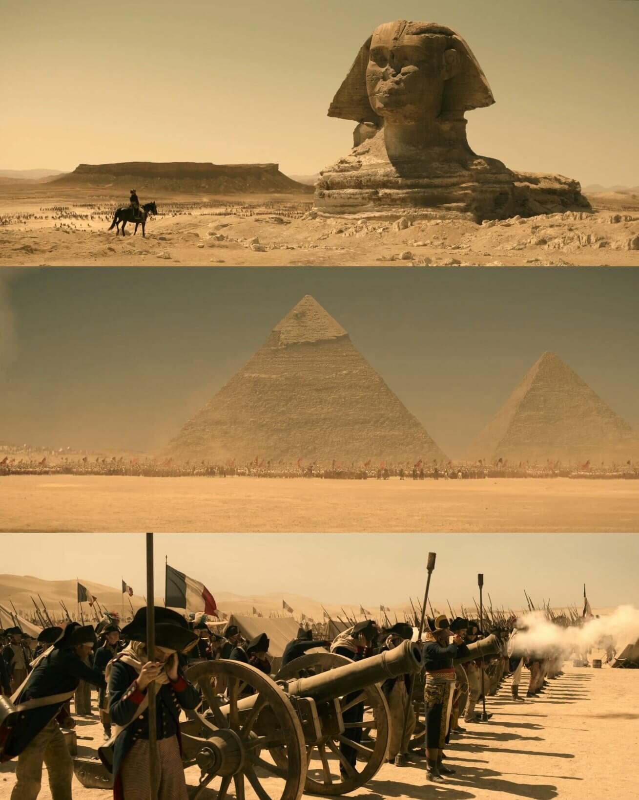 Ünlü Fransız imparatorun inişli çıkışlı yaşamını konu edinen filmdeki aktarımın aksine Napolyon Bonapart Mısır seferi sırasında Giza Piramitleri’ni topa tutmadı.